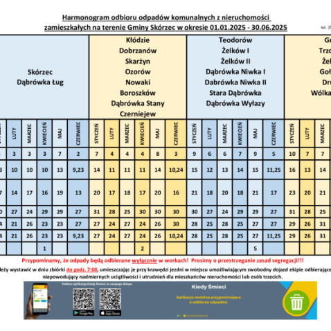 Harmonogram odbioru odpadów I-VI 2025 r.